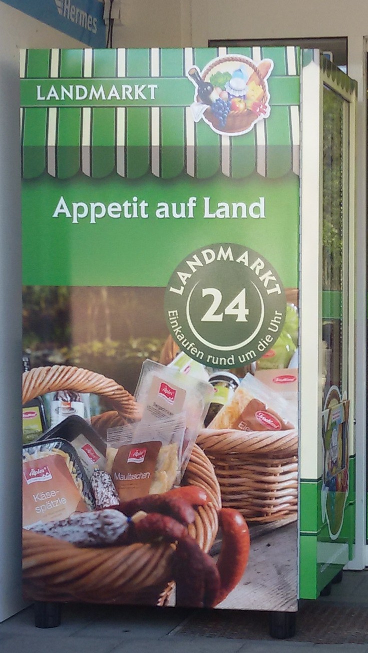 Vor unserem Markt steht Ihnen ein Automat zur Verfügung. Dort gibt es Milch, Butter, Eier, Toastbrot, Getränke und in der Sommerzeit Grillfleisch und vieles mehr. Bezahlen Sie einfach mit Bargeld.